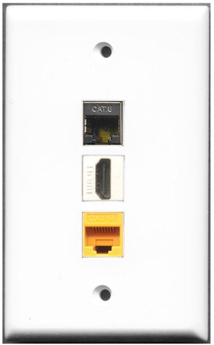 RiteAV - 1 Port HDMI 1 Shielded Cat6 Ethernet 1 Cat5e Ethernet Yellow Wall Plate