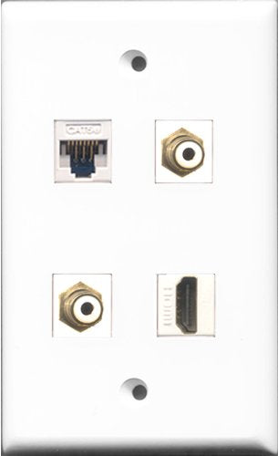 RiteAV 1 Port HDMI 2 Port RCA White and 1 Port Cat5e Ethernet White Wall Plate
