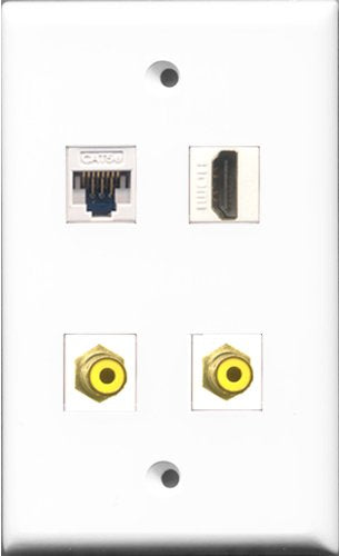 RiteAV - 1 Port HDMI 2 Port RCA Yellow and 1 Port Cat5e Ethernet White Wall Plate