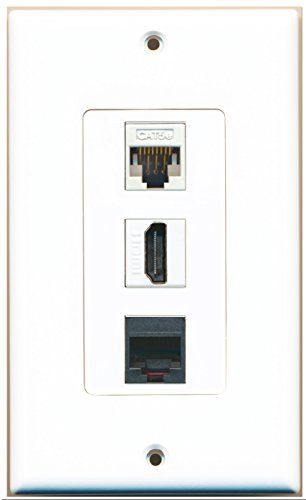 RiteAV - 1 Port HDMI and 1 Port Phone RJ11 RJ12 Black and 1 Port Cat5e Ethernet White Decorative Wall Plate