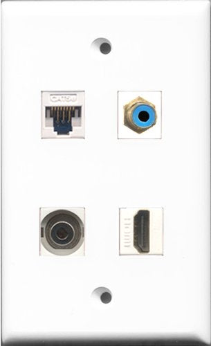 RiteAV 1 Port HDMI and 1 Port RCA Blue and 1 Port 3.5mm and 1 Port Cat5e Ethernet White Wall Plate