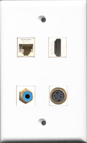 RiteAV 1 Port HDMI and 1 Port RCA Blue and 1 Port S-Video and 1 Port Cat6 Ethernet White Wall Plate