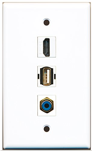 RiteAV - 1 Port HDMI and 1 Port RCA Blue and 1 Port USB A-A Wall Plate