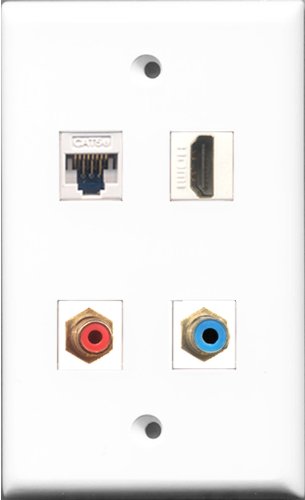 RiteAV - 1 Port HDMI and 1 Port RCA Red and 1 Port RCA Blue and 1 Port Cat5e Ethernet White Wall Plate