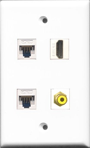 RiteAV - 1 Port HDMI and 1 Port RCA Yellow 2 Port Cat5e Ethernet White Wall Plate