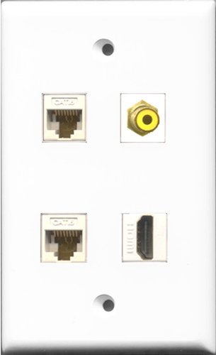 RiteAV 1 Port HDMI and 1 Port RCA Yellow 2 Port Cat6 Ethernet White Wall Plate