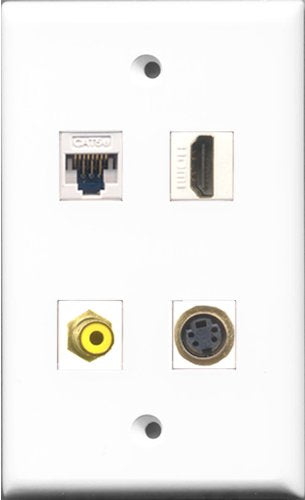 RiteAV - 1 Port HDMI and 1 Port RCA Yellow and 1 Port S-Video and 1 Port Cat5e Ethernet White Wall Plate