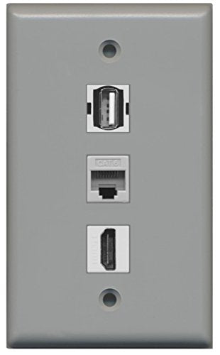 RiteAV - 1 Port HDMI USB A-A and 1 Port Cat6 Ethernet Wall Plate - Gray
