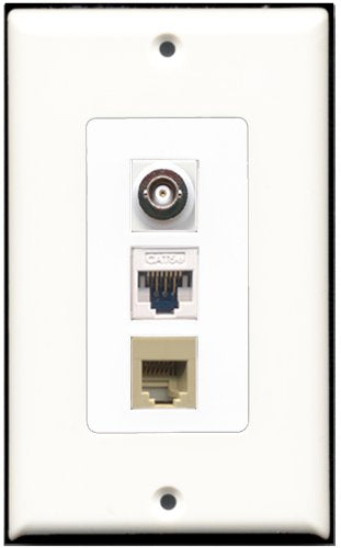 RiteAV - 1 Port Phone RJ11 RJ12 Beige 1 BNC 1 Cat5e Ethernet White Wall Plate Decorative