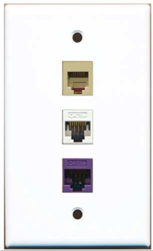 RiteAV - 1 Port Phone RJ11 RJ12 Beige 1 Cat5e Ethernet White 1 Cat5e Ethernet Purple Wall Plate