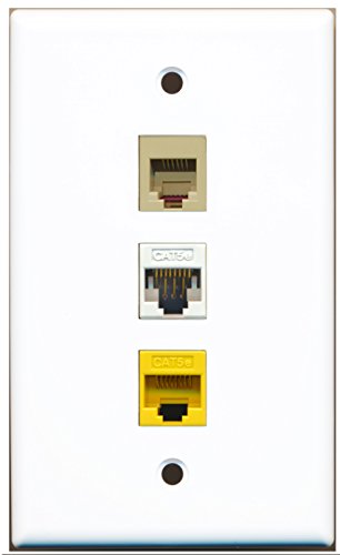 RiteAV - 1 Port Phone RJ11 RJ12 Beige 1 Cat5e Ethernet White 1 Cat5e Ethernet Yellow Wall Plate