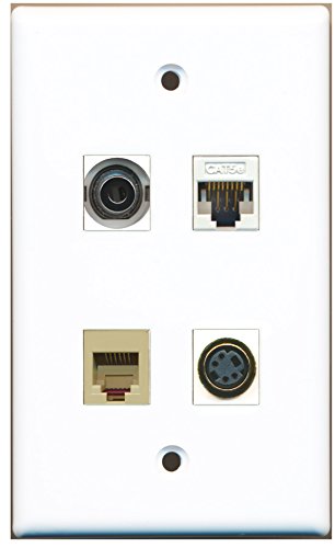 RiteAV - 1 Port Phone RJ11 RJ12 Beige 1 Port S-Video 1 Port 3.5mm 1 Port Cat5e Ethernet White Wall Plate