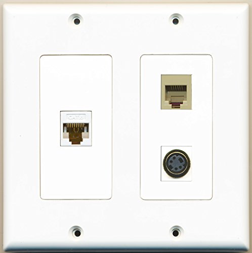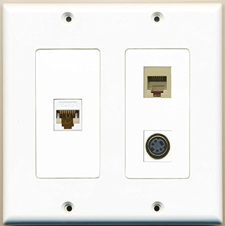 RiteAV - 1 Port Phone RJ11 RJ12 Beige 1 Port S-Video 1 Port Cat6 Ethernet White - 2 Gang Wall Plate