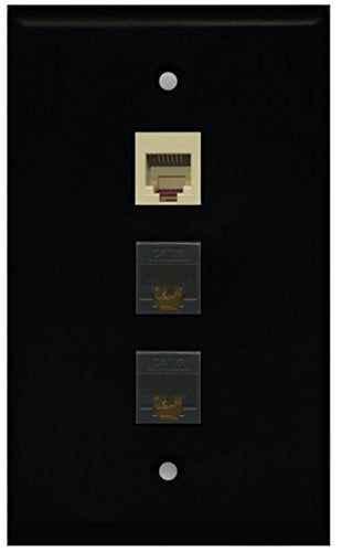 RiteAV - 1 Port Phone RJ11 RJ12 Beige 2 Port Cat6 Ethernet Wall Plate - Black