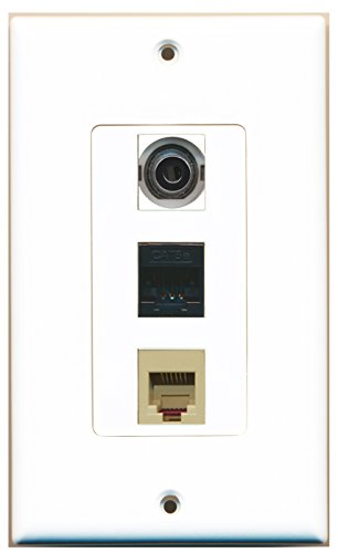RiteAV - 1 Port Phone RJ11 RJ12 Beige and 1 Port 3.5mm and 1 Port Cat5e Ethernet Black Wall Plate Decorative