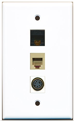 RiteAV - 1 Port Phone RJ11 RJ12 Beige and 1 Port S-Video and 1 Port Cat6 Ethernet Black Wall Plate