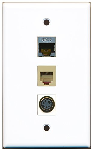 RiteAV - 1 Port Phone RJ11 RJ12 Beige and 1 Port S-Video and 1 Port Shielded Cat6 Ethernet Wall Plate