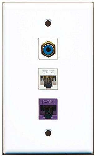 RiteAV - 1 Port RCA Blue 1 Cat5e Ethernet White 1 Cat5e Ethernet Purple Wall Plate