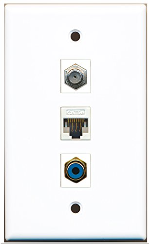 RiteAV - 1 Port RCA Blue 1 Coax Cable TV- F-Type 1 Cat5e Ethernet White Wall Plate