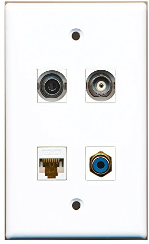 RiteAV - 1 Port RCA Blue 1 Port 3.5mm 1 Port BNC 1 Port Cat6 Ethernet White Wall Plate