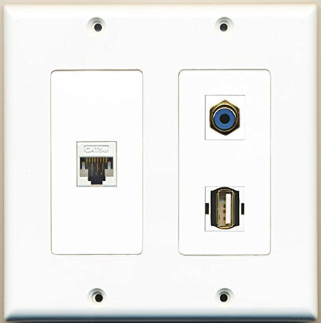 RiteAV - 1 Port RCA Blue 1 Port USB A-A 1 Port Cat5e Ethernet White - 2 Gang Wall Plate