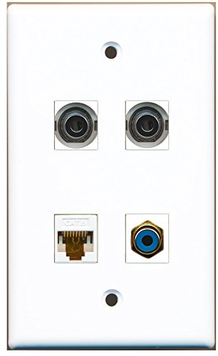 RiteAV - 1 Port RCA Blue 2 Port 3.5mm 1 Port Cat6 Ethernet White Wall Plate