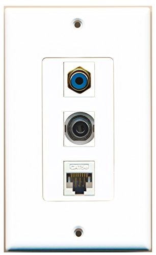 RiteAV - 1 Port RCA Blue and 1 Port 3.5mm and 1 Port Cat5e Ethernet White Decorative Wall Plate Decorative