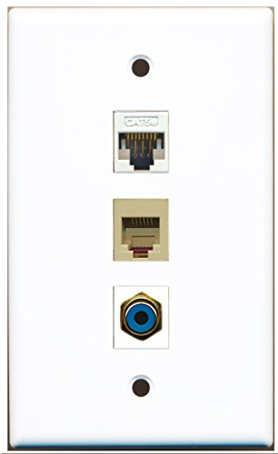 RiteAV - 1 Port RCA Blue and 1 Port Phone RJ11 RJ12 Beige and 1 Port Cat5e Ethernet White Wall Plate