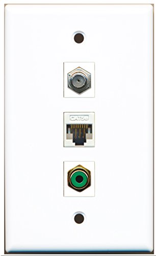 RiteAV - 1 Port RCA Green 1 Coax Cable TV- F-Type 1 Cat5e Ethernet White Wall Plate