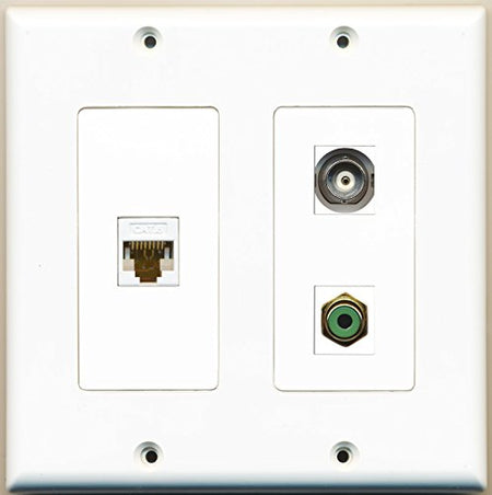 RiteAV - 1 Port RCA Green 1 Port BNC 1 Port Cat6 Ethernet White - 2 Gang Wall Plate