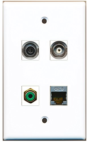 RiteAV - 1 Port RCA Green 1 Port Shielded Cat6 Ethernet 1 Port 3.5mm 1 Port BNC Wall Plate