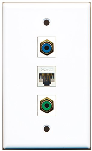 RiteAV - 1 Port RCA Green 1 RCA Blue 1 Cat5e Ethernet White Wall Plate