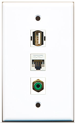 RiteAV - 1 Port RCA Green 1 USB A-A 1 Cat5e Ethernet White Wall Plate