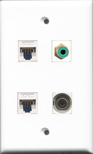 RiteAV 1 Port RCA Green and 1 Port 3.5mm 2 Port Cat5e Ethernet White Wall Plate