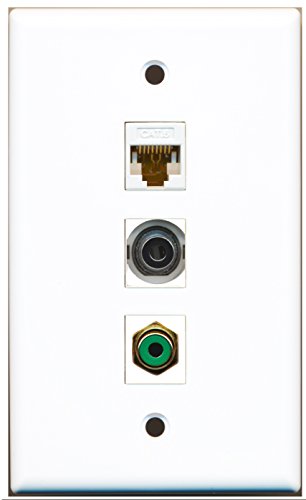 RiteAV - 1 Port RCA Green and 1 Port 3.5mm and 1 Port Cat6 Ethernet White Wall Plate