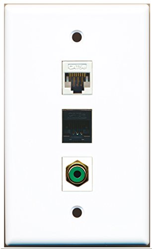 RiteAV - 1 Port RCA Green and 1 Port Cat5e Ethernet White and 1 Port Cat5e Ethernet Black Wall Plate