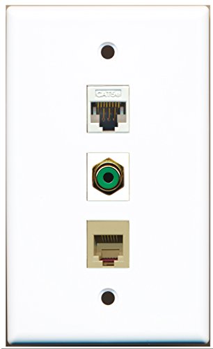 RiteAV - 1 Port RCA Green and 1 Port Phone RJ11 RJ12 Beige and 1 Port Cat5e Ethernet White Wall Plate