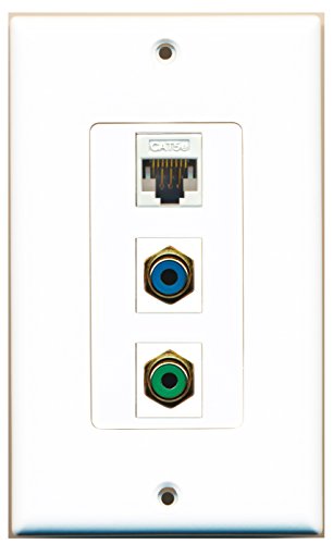 RiteAV - 1 Port RCA Green and 1 Port RCA Blue and 1 Port Cat5e Ethernet White Decorative Wall Plate Decorative