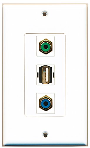 RiteAV - 1 Port RCA Green and 1 Port RCA Blue and 1 Port USB A-A Decorative Wall Plate Decorative