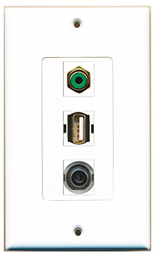 RiteAV - 1 Port RCA Green and 1 Port USB A-A and 1 Port 3.5mm Decorative Wall Plate Decorative