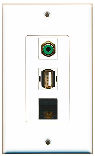 RiteAV - 1 Port RCA Green and 1 Port USB A-A and 1 Port Cat6 Ethernet Black Decorative Wall Plate Decorative