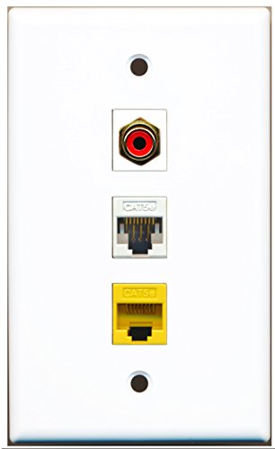 RiteAV - 1 Port RCA Red 1 Cat5e Ethernet White 1 Cat5e Ethernet Yellow Wall Plate