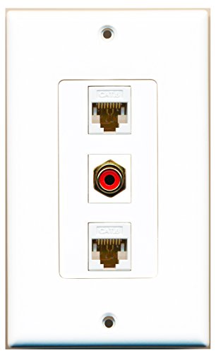 RiteAV - 1 Port RCA Red 2 Port Cat6 Ethernet White Decora Wall Plate Decorative