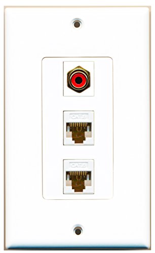 RiteAV - 1 Port RCA Red 2 Port Cat6 Ethernet White Decorative Wall Plate Decorative