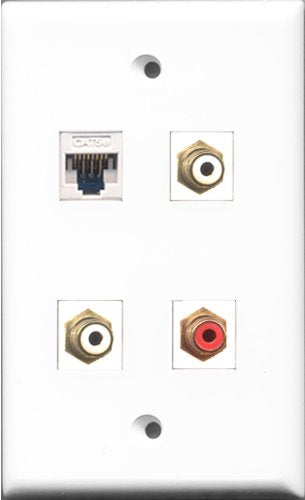 RiteAV 1 Port RCA Red 2 Port RCA White and 1 Port Cat5e Ethernet White Wall Plate