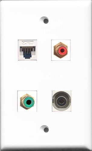 RiteAV 1 Port RCA Red and 1 Port RCA Green and 1 Port 3.5mm and 1 Port Cat5e Ethernet White Wall Plate