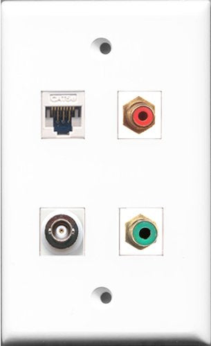 RiteAV 1 Port RCA Red and 1 Port RCA Green and 1 Port BNC and 1 Port Cat5e Ethernet White Wall Plate