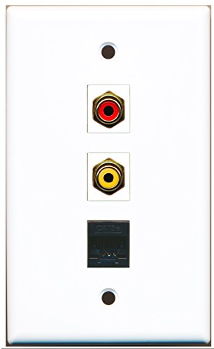RiteAV - 1 Port RCA Red and 1 Port RCA Yellow and 1 Port Cat5e Ethernet Black Wall Plate