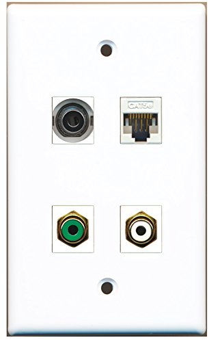 RiteAV - 1 Port RCA White 1 Port RCA Green 1 Port 3.5mm 1 Port Cat5e Ethernet White Wall Plate