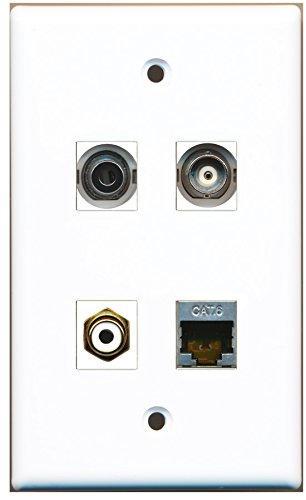 RiteAV - 1 Port RCA White 1 Port Shielded Cat6 Ethernet 1 Port 3.5mm 1 Port BNC Wall Plate
